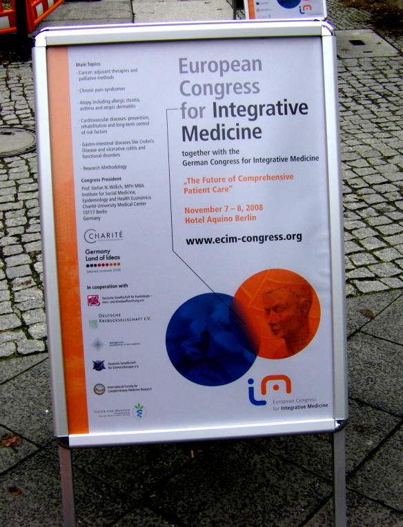 ... sie wollen die Qualität der Komplementärmedizin bestimmen bei fehlender Eigenqualität ihrer Professoren sprich Ausbildung und Patientenerfahrung auf den Gebieten der Akupunktur, Test-Verfahren, Homöopathie, Ozontherapie. Sie wollen eine ‚Brücke zwischen der Schulmedizin und der Komplementärmedizin sein’, beteuert Prof. Willich, Kardiologe und Lehrstuhlinhaber der Sozialmedizin an der Berliner Charité in seinem Grußwort zum 1.Europäischen Kongress für Integrative Medizin in Berlin. Doch wer mag sie nur beraten haben, Brücke sein zu wollen zwischen Medizinufern die unterschiedlicher im Menschen- wie Krankheitsbild kaum sein können? Wem verdankt diese Bewegung ihren Namen: ‚integrativ’?
